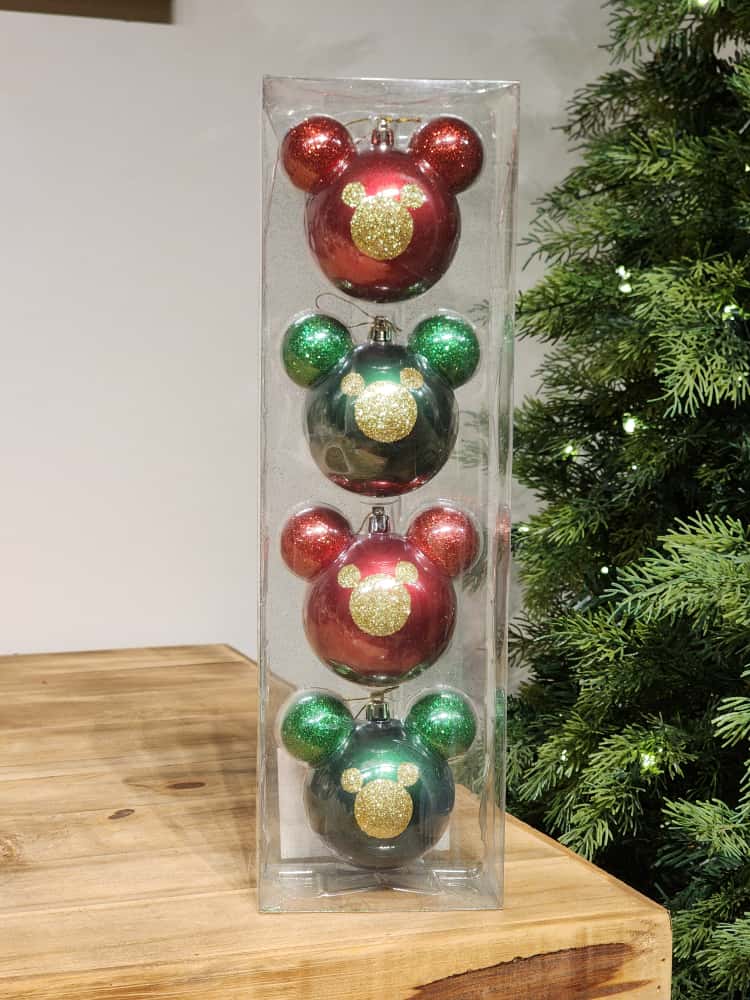 BOLA MICKEY COM GLITTER VERDE E VERMELHO 8CM KIT COM 4 UNIDADES