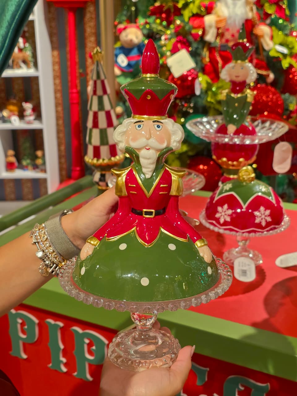 COLEÇÃO 2026- SUPORTE DE VIDRO COM TAMPA EM FORMATO DE SOLDADO,PODE SE USAR PARA COLOCAR PUDIM, BOLOS E DOCES.