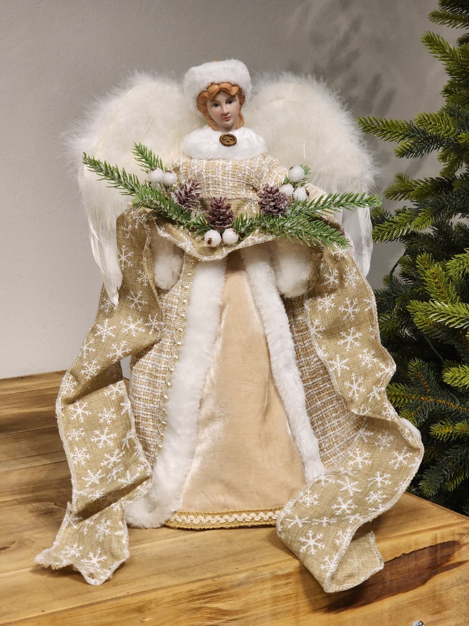 DETALHES DO PRODUTO ANJO NATALINO CHAMPANHE, SERVE COMO TOPO PARA ÁRVORES