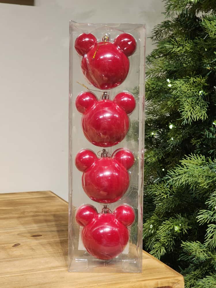 BOLA MICKEY VELUDO VERMELHO 8CM KIT COM 4 UNIDADES