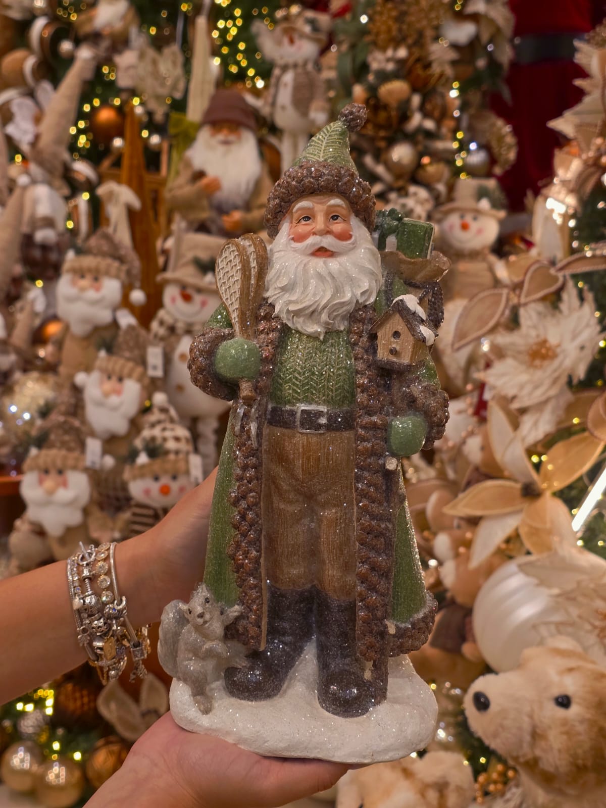 PAPAI NOEL VERDE RÚSTICO EM RESINA 32CM - PRÉ VENDA 2026