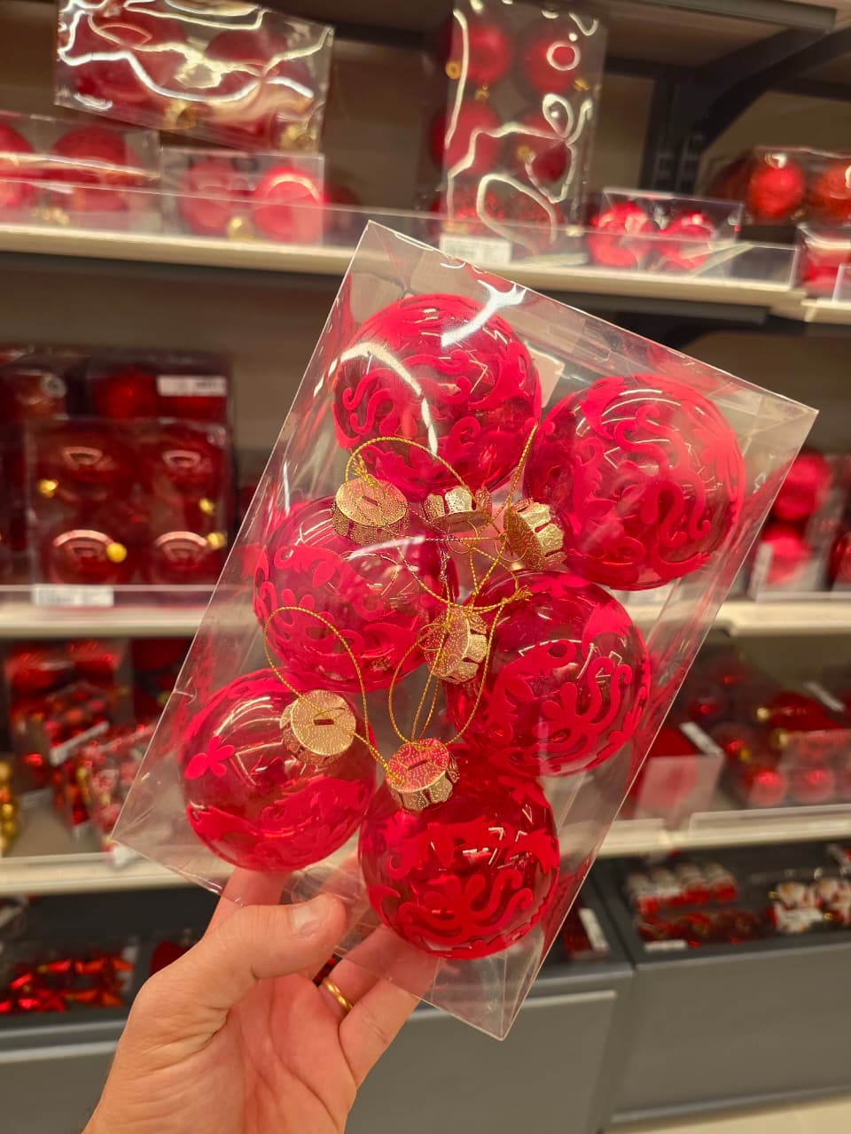 BOLA VERMELHA TRABALHADA EM ARABESCOS VELUDO 8CM COM 6 UNIDADES - PRÉ VENDA 2026