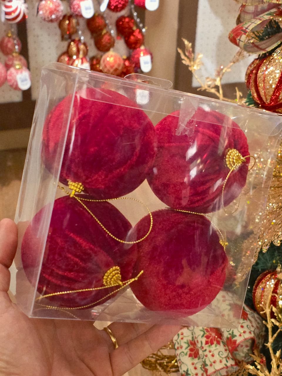 BOLA VELUDO VERMELHA, MARAVILHOSA COM ESSE PINO NO DOURADO