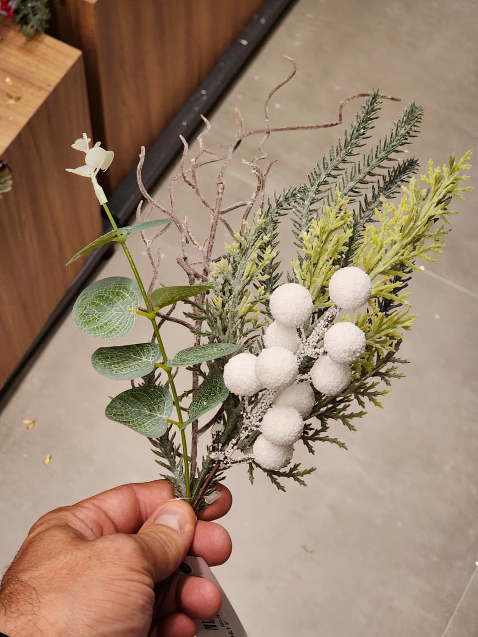 GALHO DECORATIVO BERRY BRANCO COM FOLHAS 42CM - PRÉ VENDA 2026