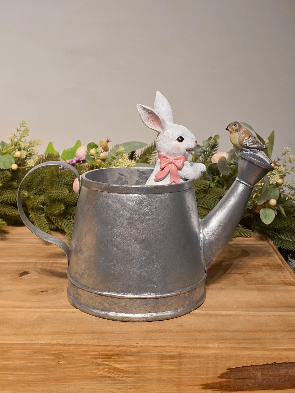 DETALHES DO PRODUTO COELHO EM RESINA COM PÁSSARO