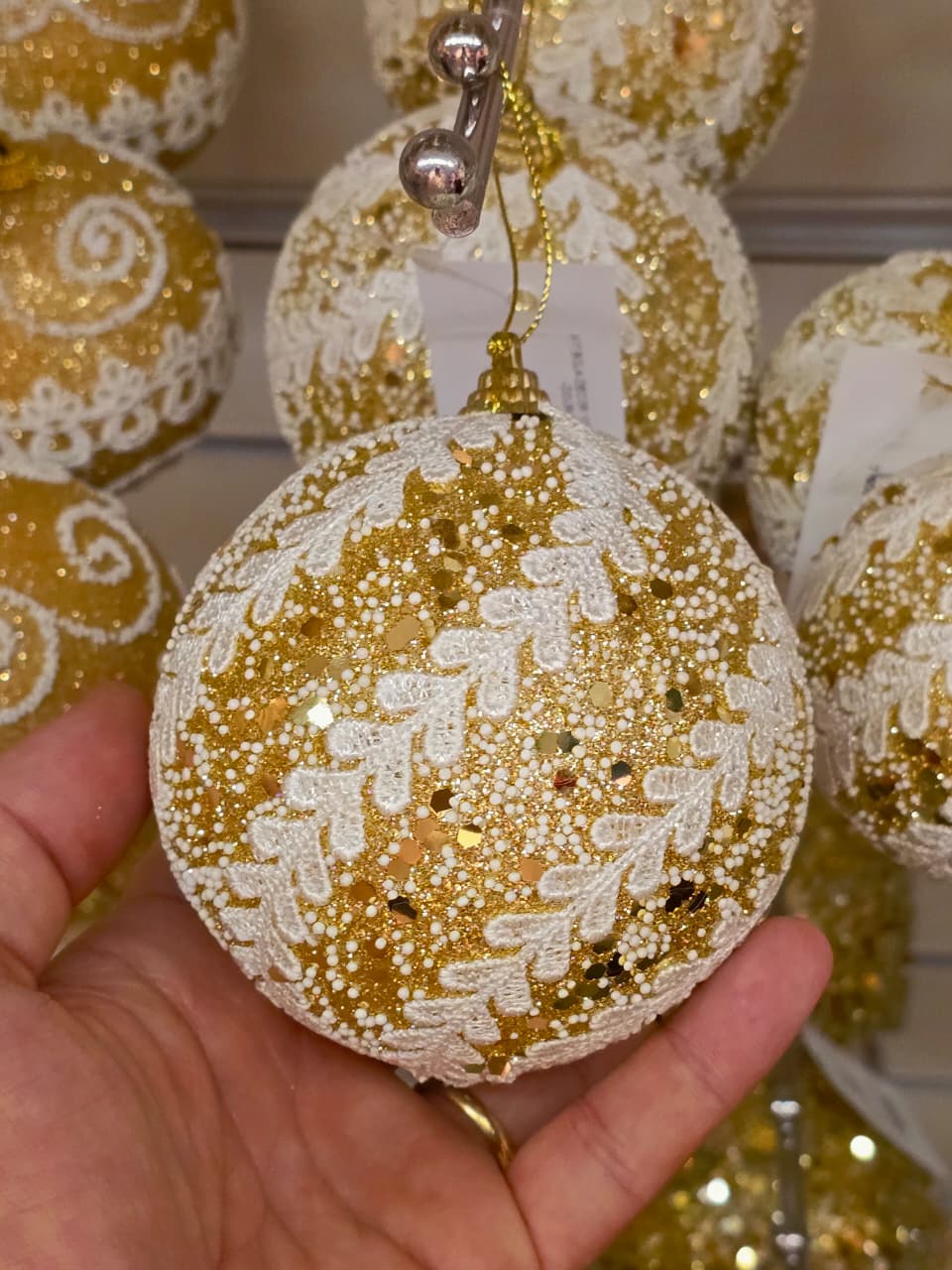 BOLA DOURADA TRABALHADA 10CM COM 3 UNIDADES - PRÉ VENDA 2026