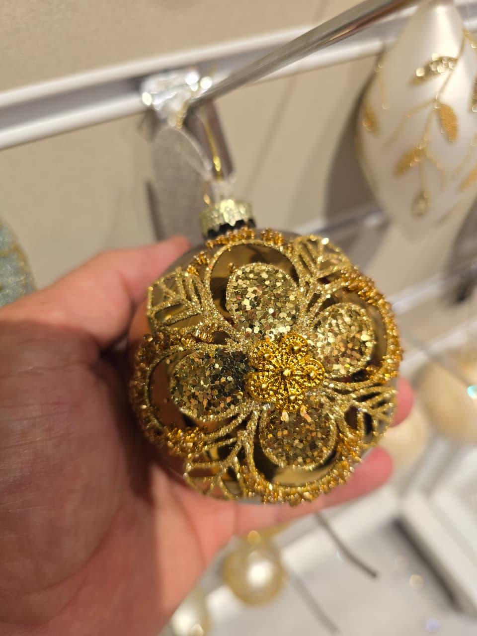BOLA DE VIDRO DOURADA DECORADA 8CM - PRÉ VENDA 2026
