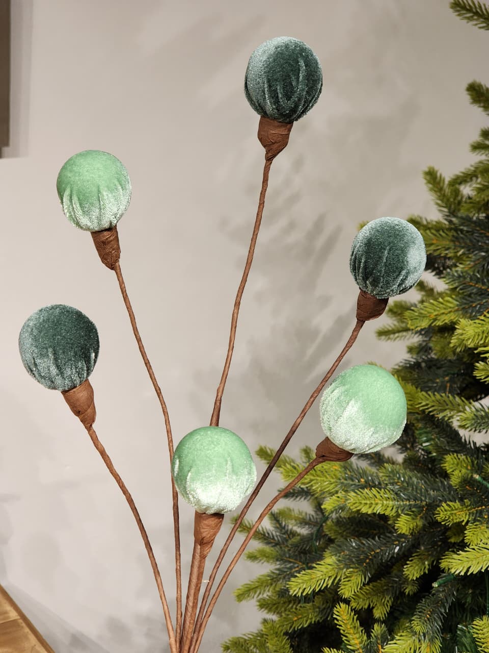 GALHO ARAMADO BOLINHAS VELUDO VERDE E MENTA 65CM