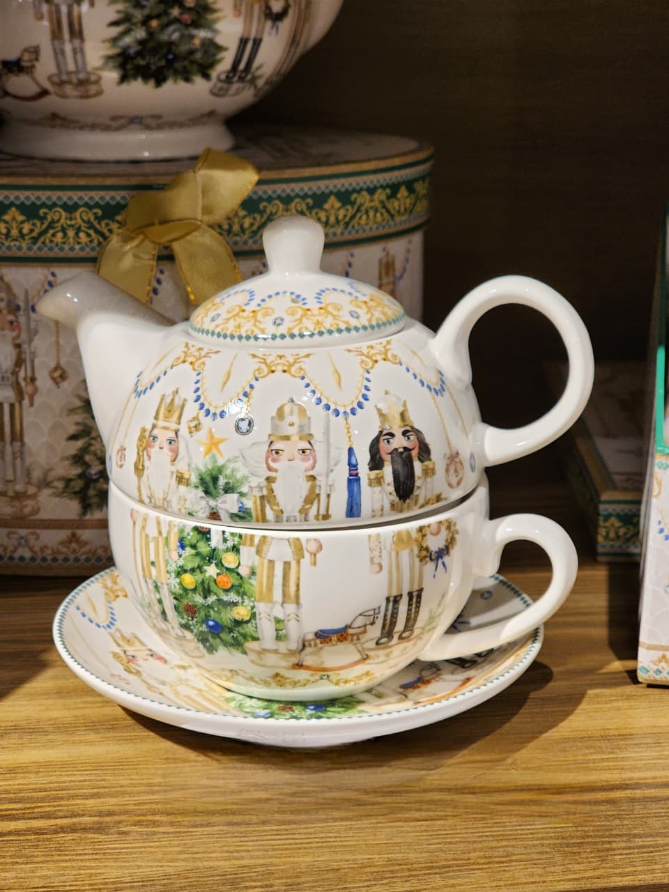 BULE DECORADO COM XÍCARA EM PORCELANA COM CAIXA DE PRESENTE