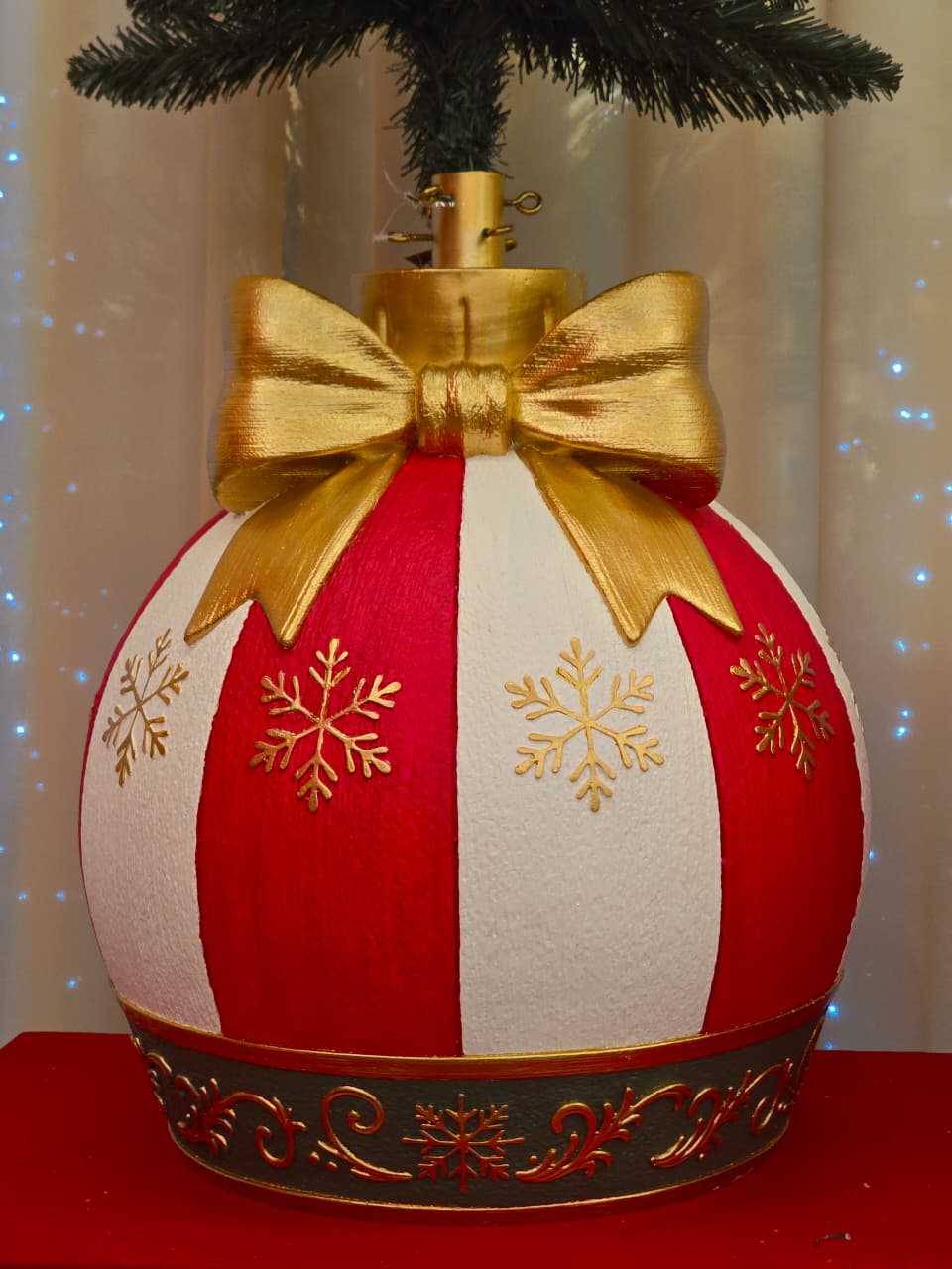 MEDIDAS DA PEÇA: 42X51CM - MATERIAL RESINA - ATENÇÃO A BASE TEM LIMITAÇÕES DE PESO E TAMANHO IDEAL PARA ÁRVORES DE 1,20, 1,50,1,80 SE A ÁRVORE FOR LEVE E COM DIÂMETRO MENOR PODE USAR 2,10CM