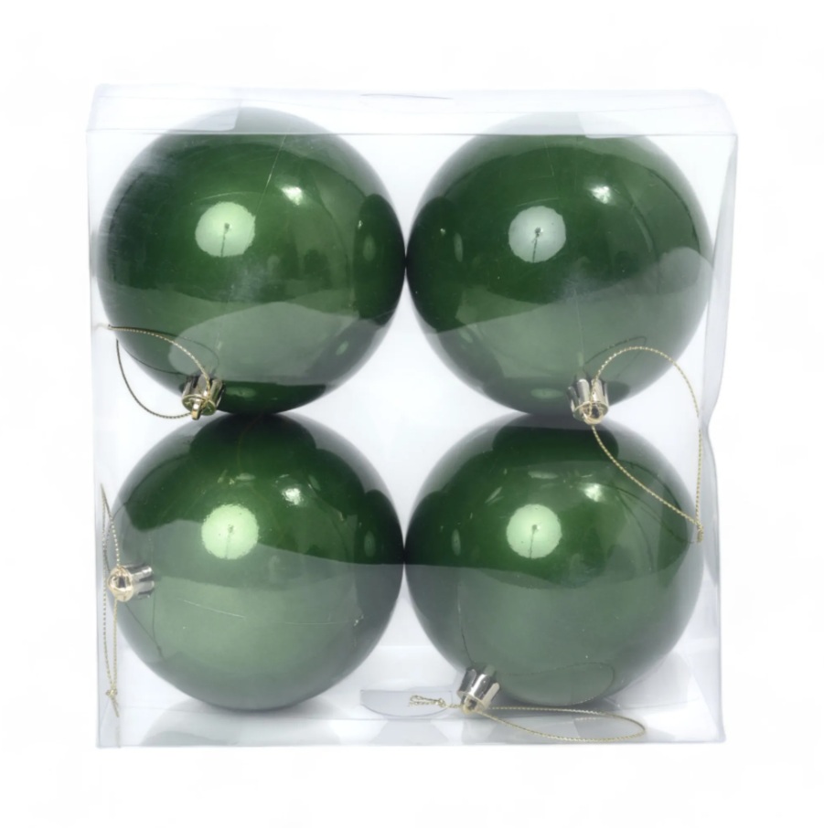BOLA BRILHO VERDE 10CM COM 4 UNIDADES