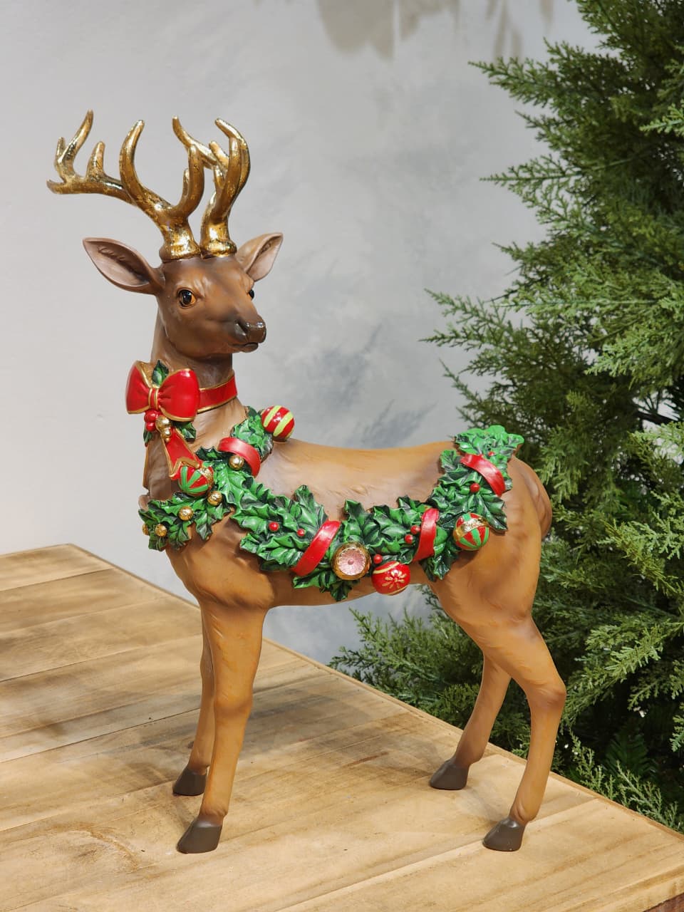 RENA DECORATIVA EM RESINA, BELA RENA DECORADA COM UM LINDO FESTÃO DECORADO