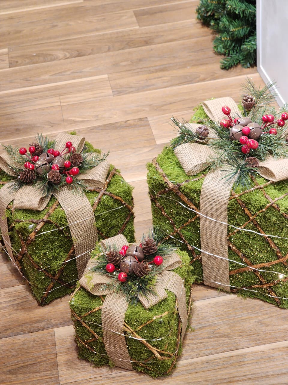 TRIO DE CAIXA DE PRESENTE COM LED WARM VERDE MUSGO - PRÉ VENDA 2026