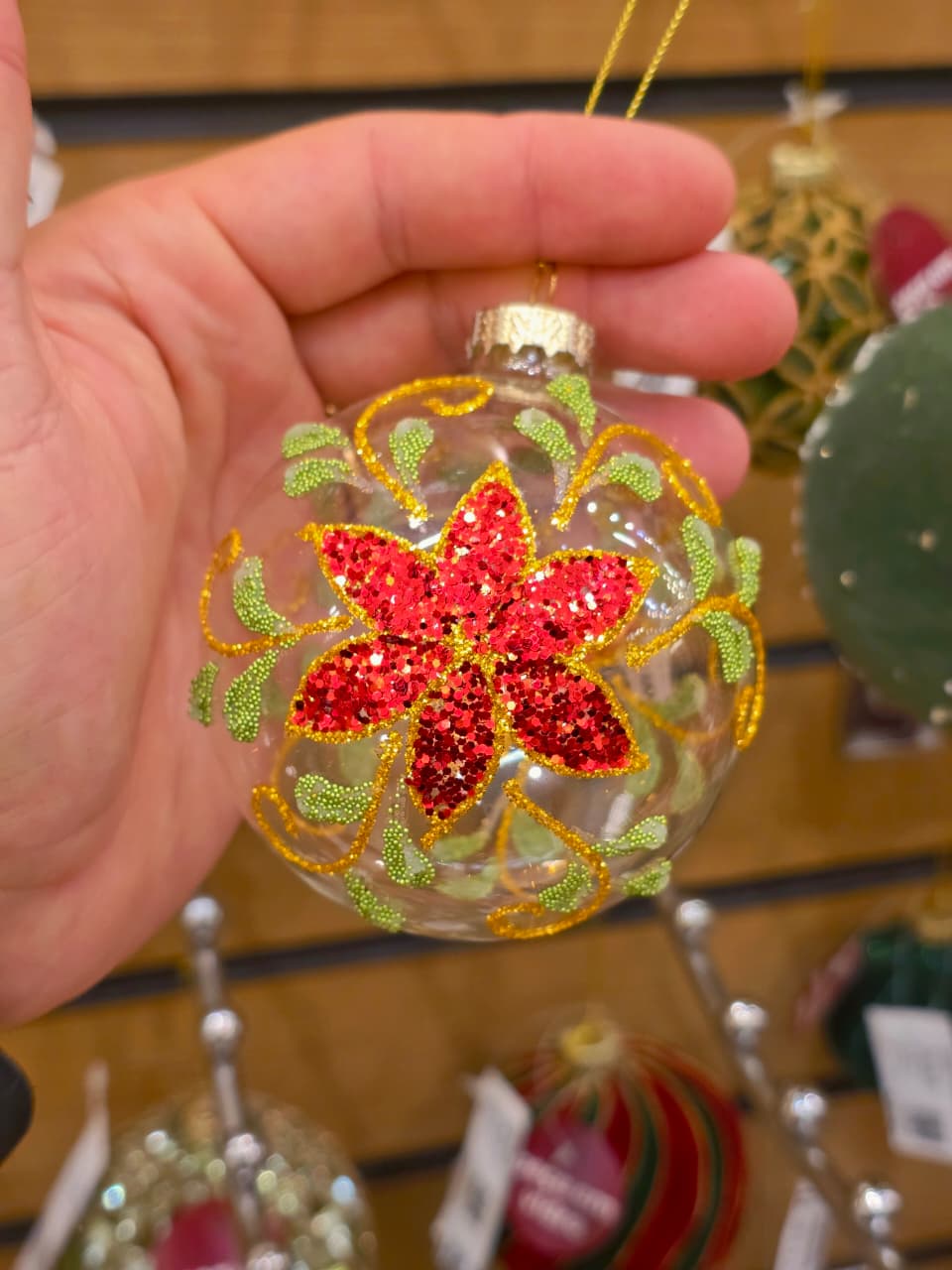 BOLA DE VIDRO TRANSPARENTE DECORADA 8CM - PRÉ VENDA 2026