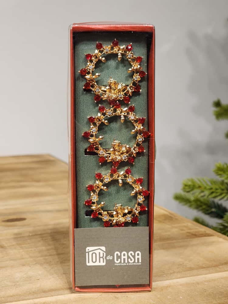 KIT COM 4 ANEIS DE GUARDANAPO GUIRLANDA VERMELHO E BRANCO KIT COM 4 UNIDADES