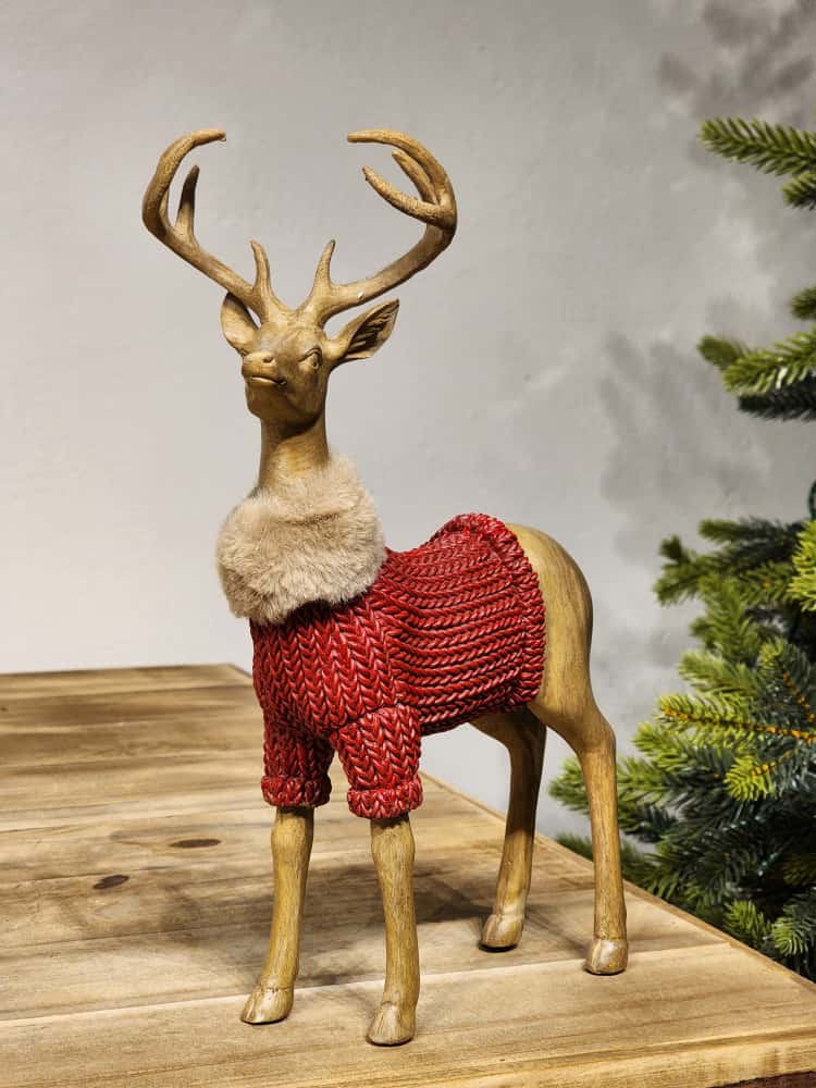 DETALHES DO PRODUTO RENA EM RESINA COM SUETER NATALINO