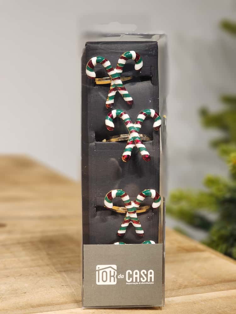 KIT COM 4 ANEIS DE GUARDANAPO CANDY CANNE VERMELHO E BRANCO KIT COM 4 UNIDADES