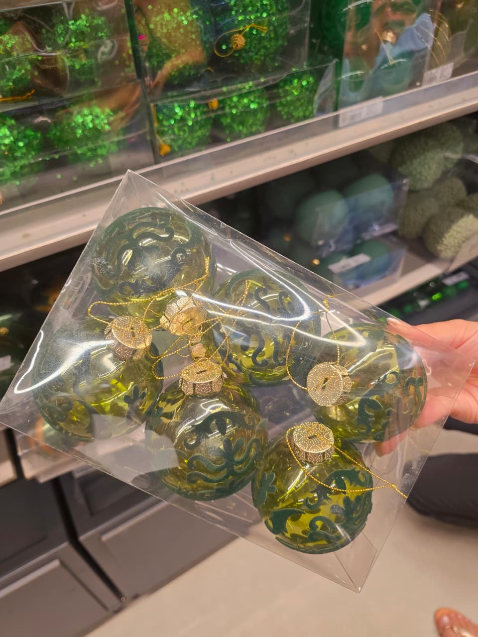BOLA VERDE TRABALHADA EM ARABESCOS VELUDO 8CM COM 6 UNIDADES - PRÉ VENDA 2026