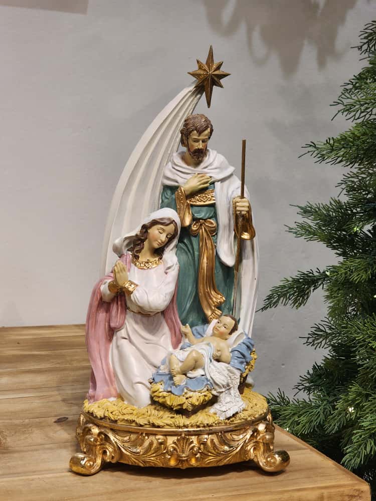 DETALHES DO PRODUTO LINDA SAGRADA FAMÍLIA COM ANJO ABRAÇANDO COM SUAS ASAS