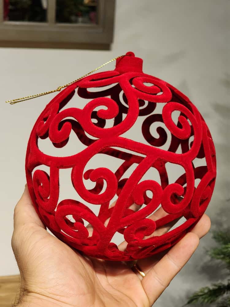 BOLA VELUDO VAZADA VERMELHA 15CM COM 1 UNIDADE