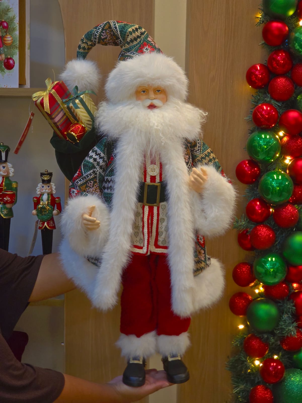 PAPAI NOEL SUPER LUXUOSO, PEÇA DE EXTREMA QUALIDADE EM DETALHES DESDE O ROSTO ATÉ O SEU FINO ACABAMENTO EM SUAS ROUPAS UMA PEÇA DE COLEÇÃO PREMIUM, IDEAL PARA QUEM PROCURA UMA PEÇA COM LUXO E RIQUEZA.