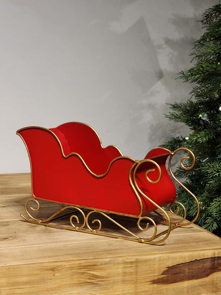 TRENO EM METAL VERMELHO E DOURADO, TAMANHO IDEAL PARA COLOCAR EM CIMA DA MESA, PARA USAR NA ÁRVORE.