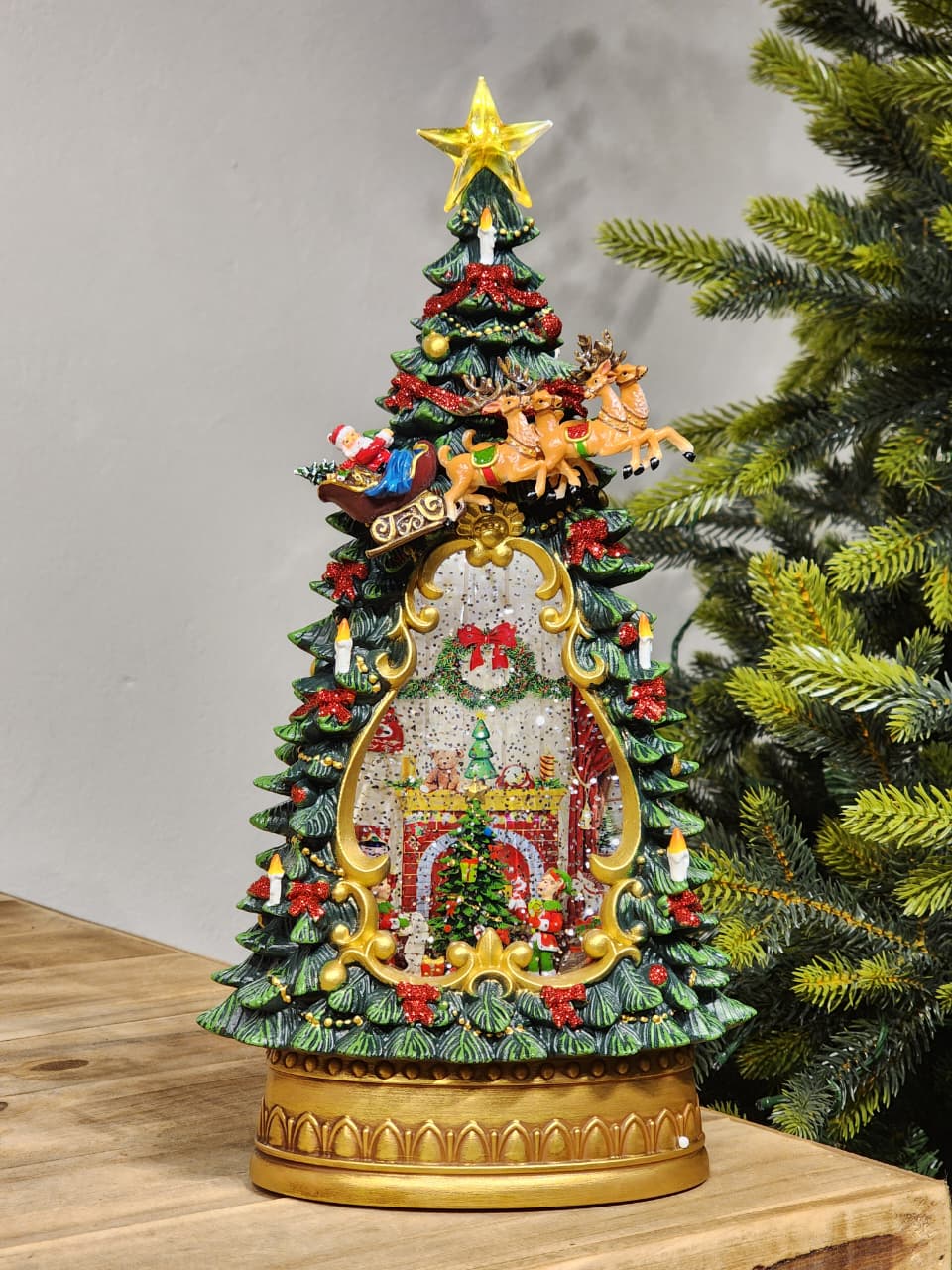 DETALHES DO PRODUTO BELO GLOBO EM FORMATO DE ÁRVORE DE NATAL COM PAPAI NOEL NO TRENO