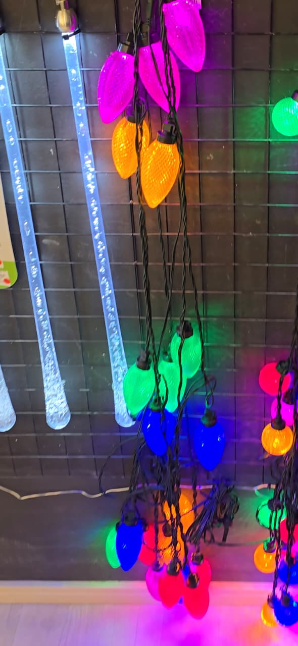 Comprimento: 9,5 METROS - 20 LÂMPADAS COLORIDAS FIXAS - LÂMPADA EM FORMATO DE BOLA - BIVOLT PODE SER USADO NO AMBIENTE INTERNO E EXTERNO.