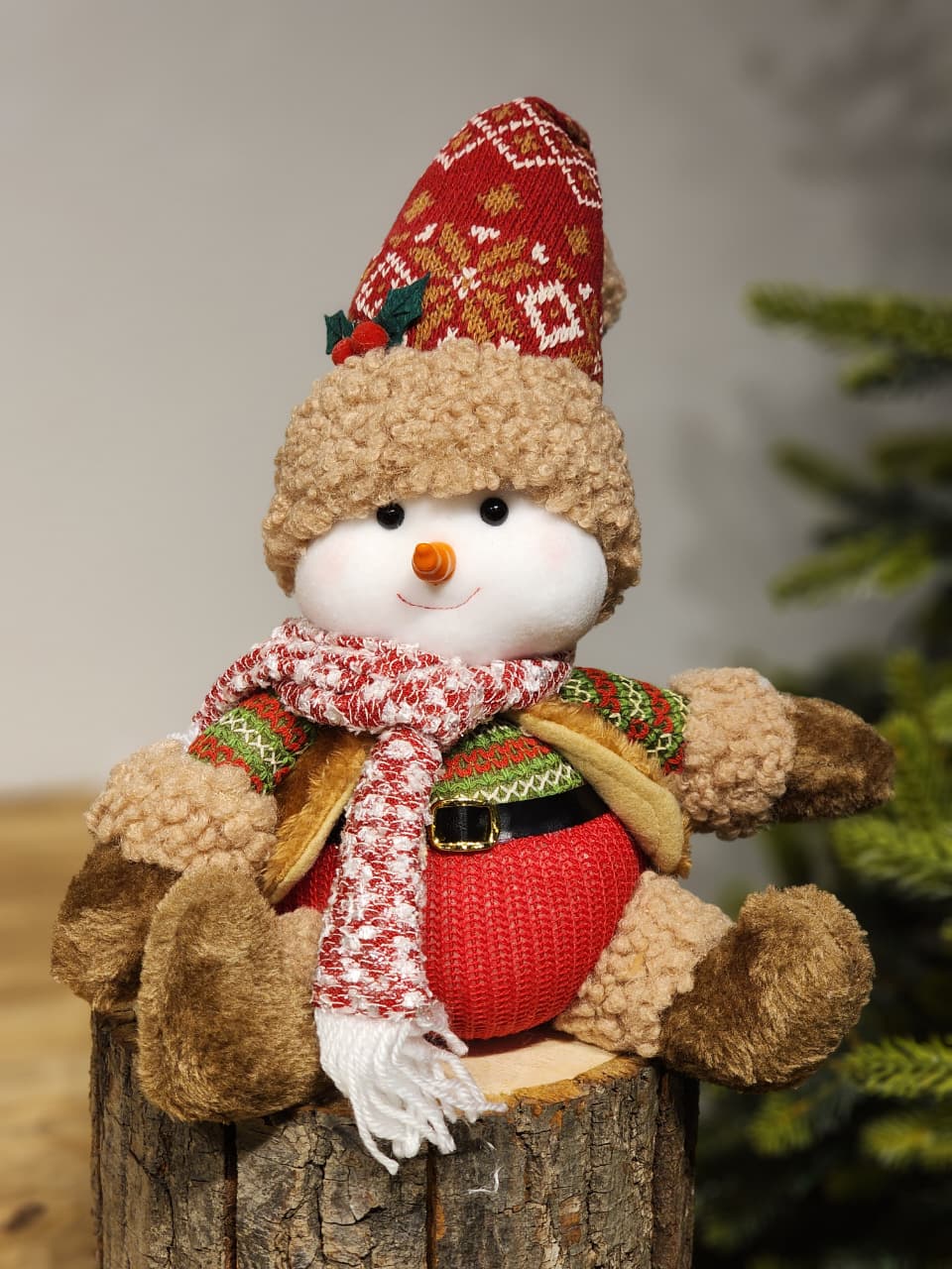 BONECO DE NEVE MENINO SENTADO VERMELHO E VERDE 26CM