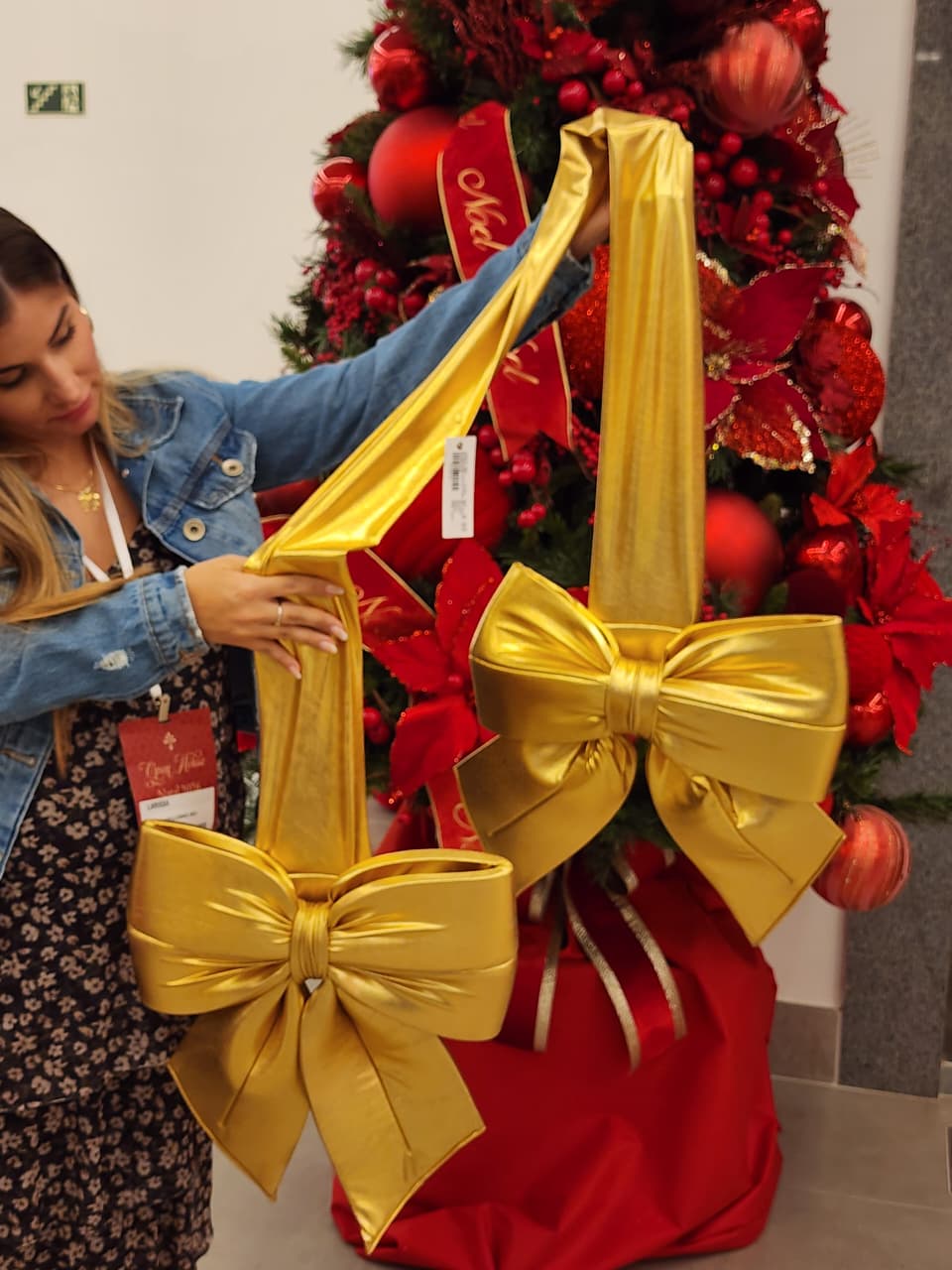 POSSUI BOLSO ATRAS DO LAÇO PARA COLOCAR GALHOS E FLORES.