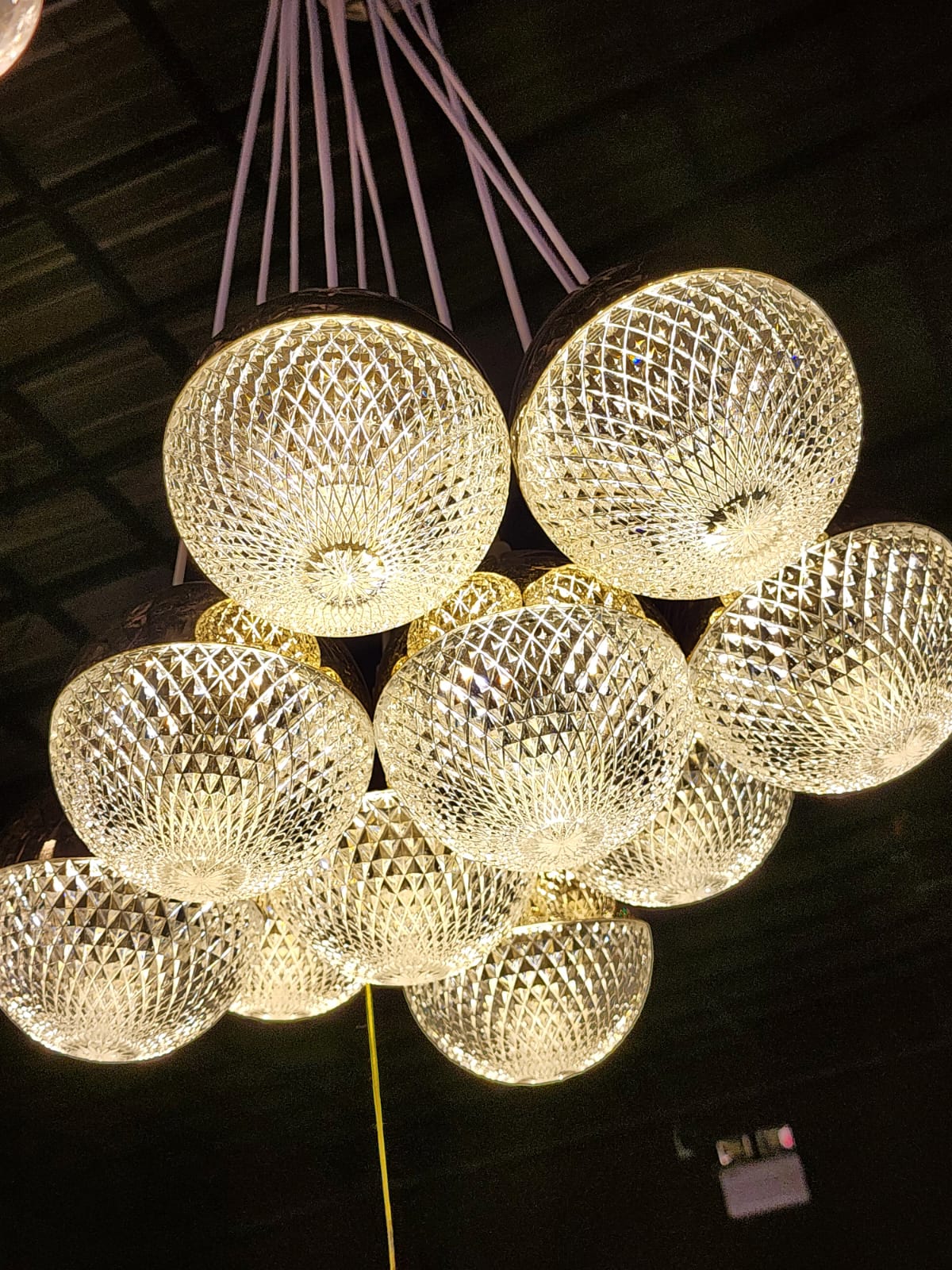 NOVIDADE PENDENTE ILUMINADO 10 BOLAS NA MEDIDA DE 12X12CM COM 1,80CM DE CAÍDA, FICA UM ESPETÁCULO PARA POR NA ÁRVORE OU PARA COLOCAR AÉREO EM CIMA DE MESAS ETC