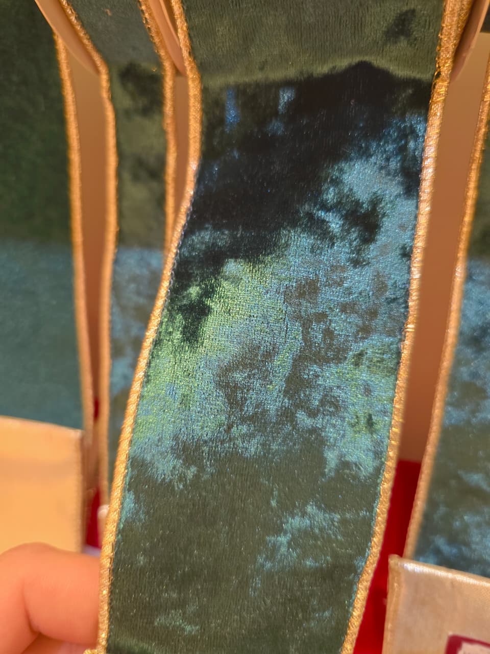 FITA ARAMADA COM DUPLA FACE, A FITA E VERDE E POSSUI DOURADO NA PARTE INTERNA
