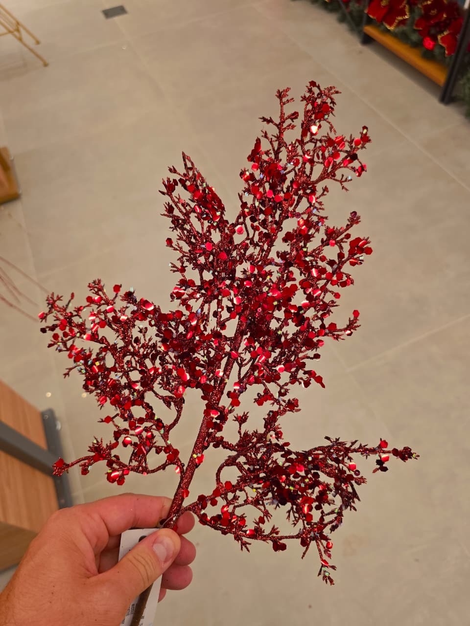 GALHO COM FOLHAGENS METALIZADA VERMELHA 54CM - PRÉ VENDA 2026
